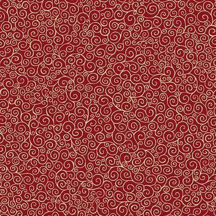 Tissu de Noël rouge avec motifs dorés. Cet imprimé existe en vert . Tissu et motif sont des incontournables des projets de Noël.