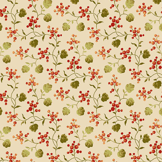 Ce tissu fait parti de la collection "autumn woods" de Renée NANNEMAN. Collection aux tons chauds et motifs d'automne. Cet imprimé, grappe de groseilles sur fond écru existe en deux autres versions sur fond jaune/ocre et sur fond marron.