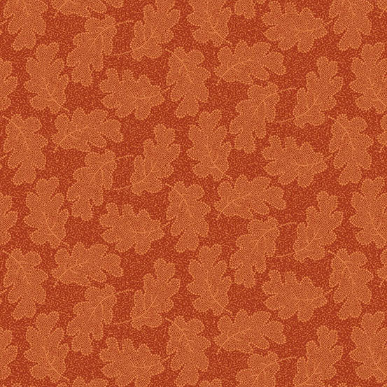 Ce tissu fait parti de la collection "Autumn woods" de Renée NANNEMAN. Collection aux tons chauds et motifs d'automne. Cet imprimé, motif feuilles de chêne tons sur tons orangé existe en deux autres versions en ton sur ton vert et en ton sur ton jaune.